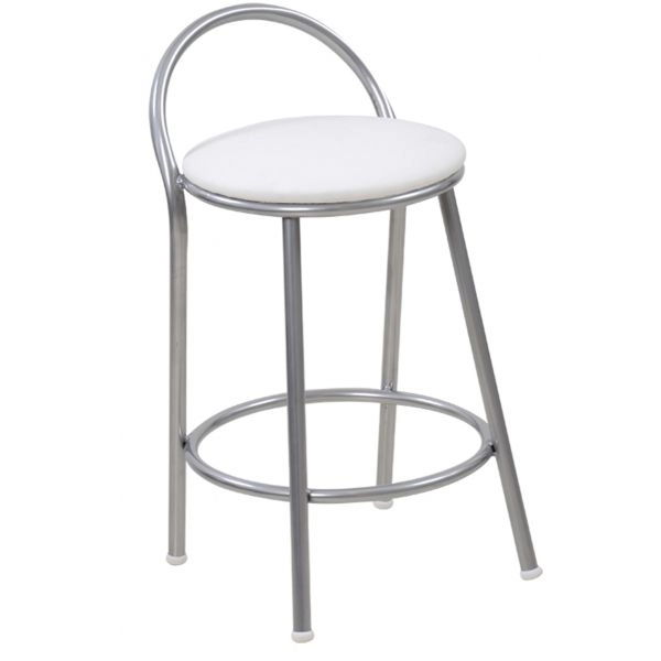 Banco Metalnew Com Encosto 47 cm Prata - Assento Branco